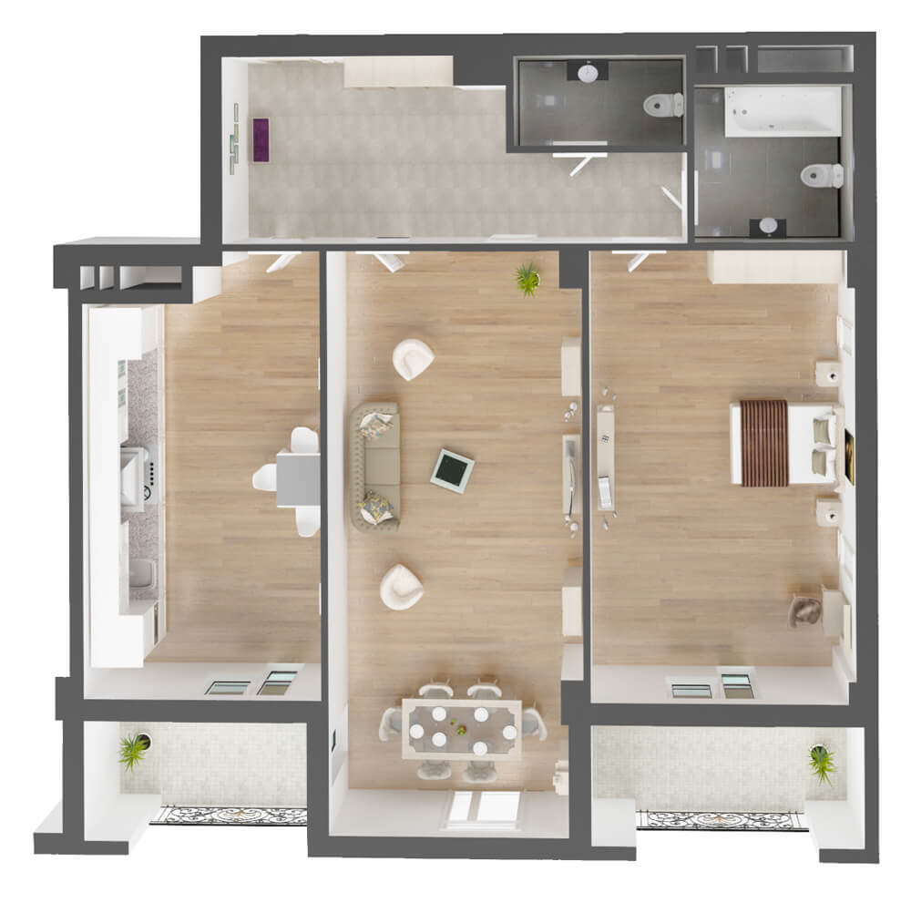 Apartments Blok B Status: Free №22 2 room 108.7 м² Kitchen 21.3м² Living room 28.9м² Bed room 23.9м² Hall 12.4м² Restroom 3.8м²/5.4м² Balcony 6.0м²/7.0м²