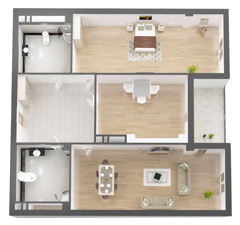 Апартаменты Блок C Статус: Свободно №4 2 комнаты 106.5 м² Кухня 17.7м² Зал 26.6м² Спальня 24.5м² Холл 15.6м² Уборная 7.5м²/8.2м² Балкон 6.4м²